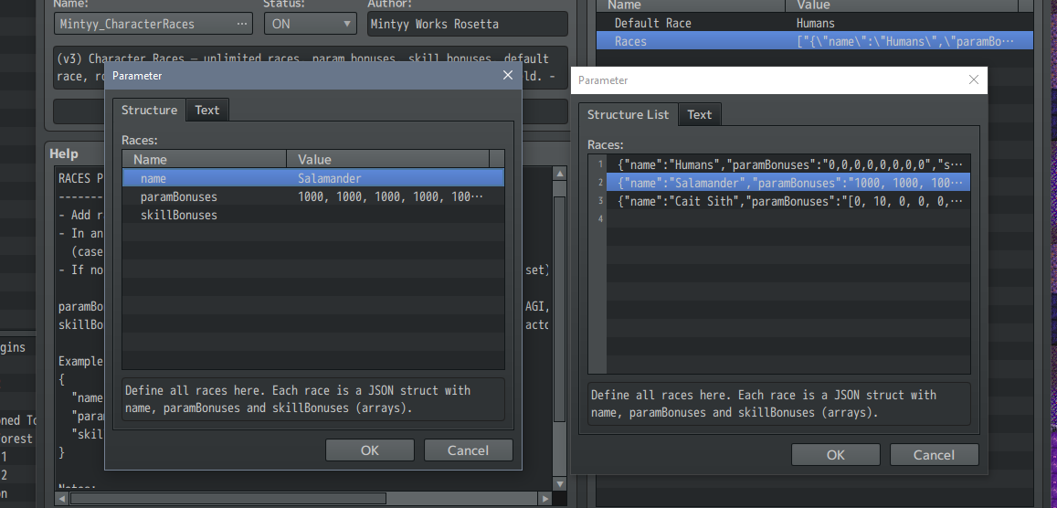 - This plugin does not write race data into save files; it computes bonuses from DB note tags + plugin params.